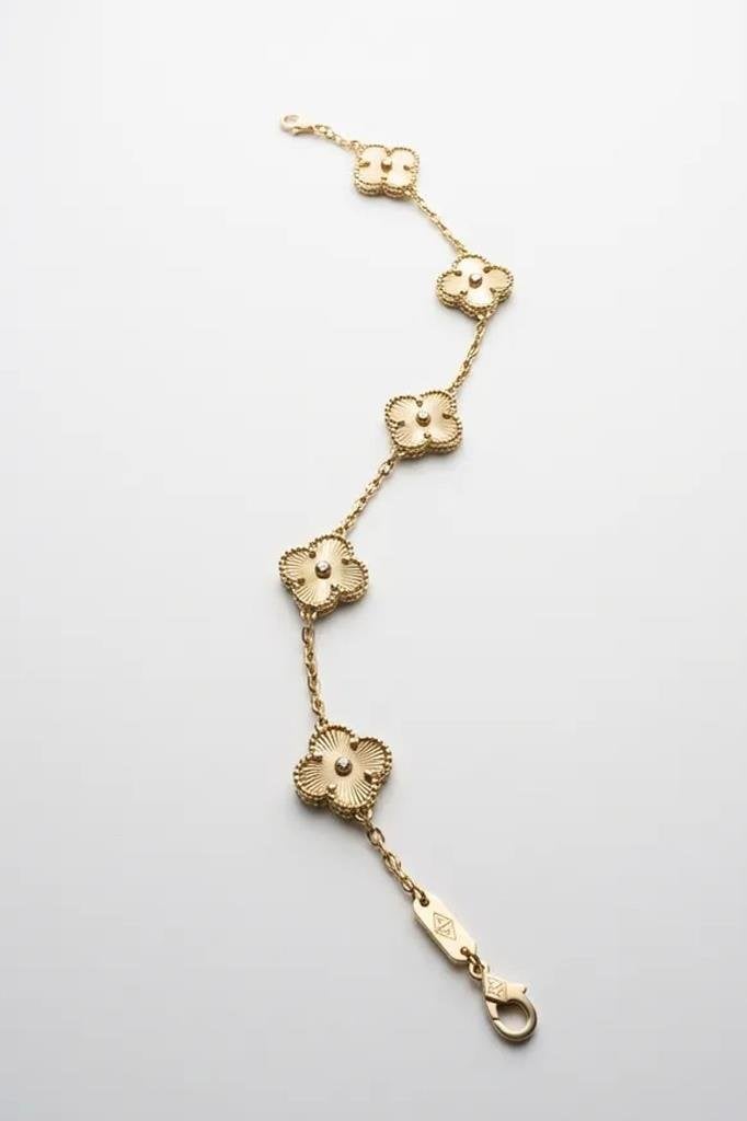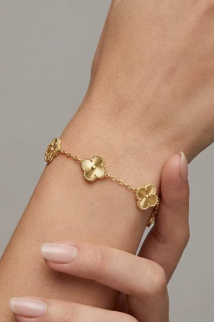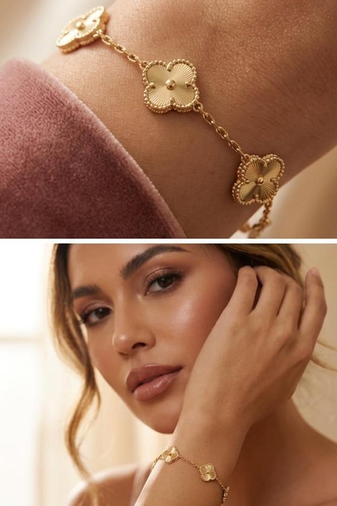 Bileğinize her hareket verdiğinizde ışığı yakalayan çiçek formları, altın tonunun teninizle kurduğu o sıcak uyumla zarafetin en sade halini sunar. Gösterişli olmadan dikkat çeken, abartısız ama etkileyici bir ışıltı… Günlük bir kombinde bile kendinizi daha özenli hissetmenizi sağlar, özel bir davette ise şıklığınızın en zarif tamamlayıcısı olur.