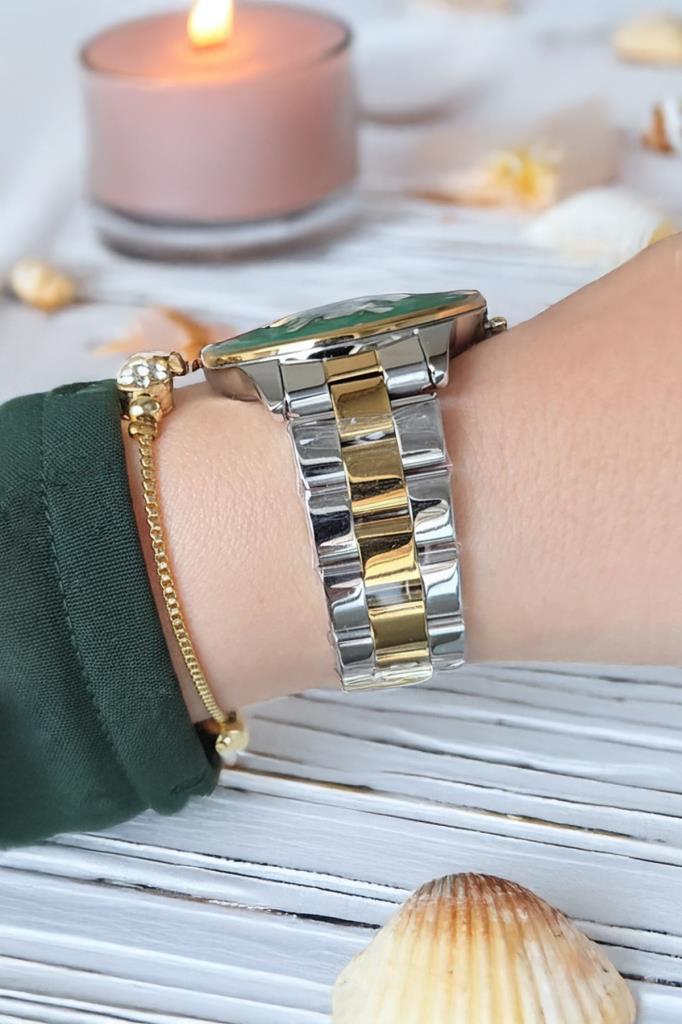 Altın/Metalik Yeşil Kadran Kadın Kol Saati - Orijinal - Kesme Cam - 2 Yıl Garanti - Bileklik Hediye