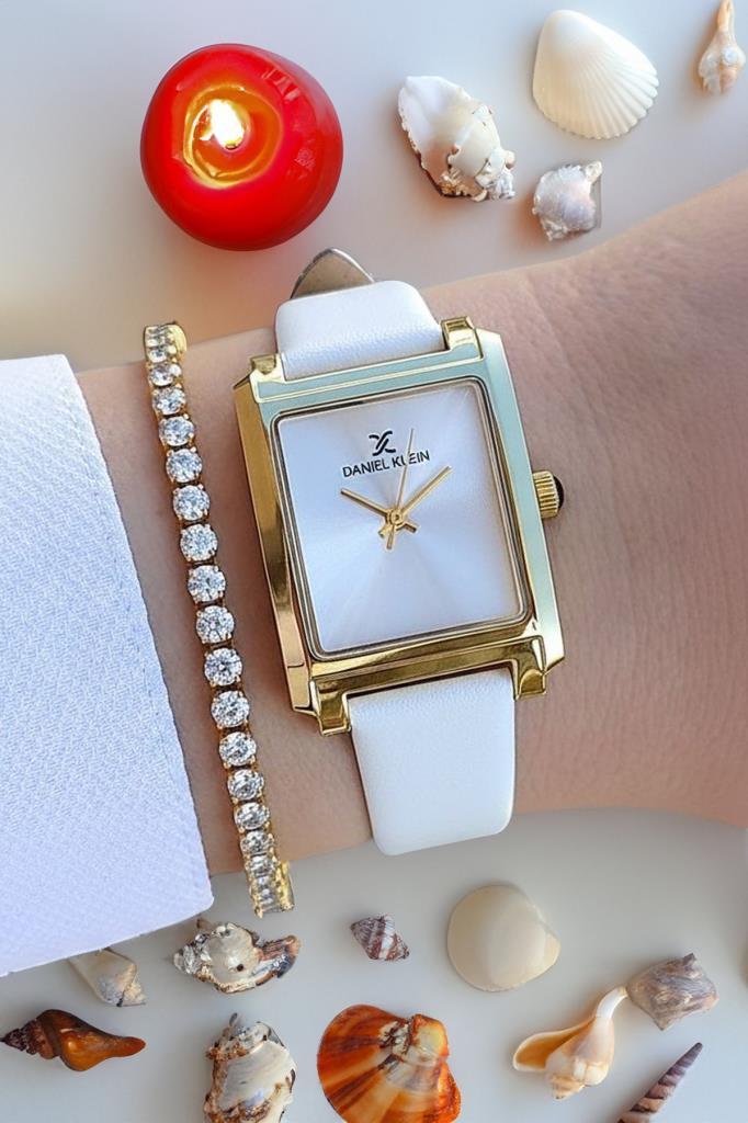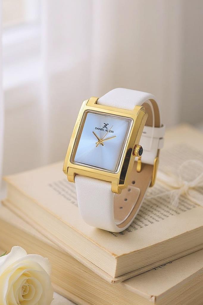 Daniel Klein beyaz deri kayışlı kadın kol saati modeli, zarif kare kasa tasarımı ile şıklığı ve konforu bir arada sunar.