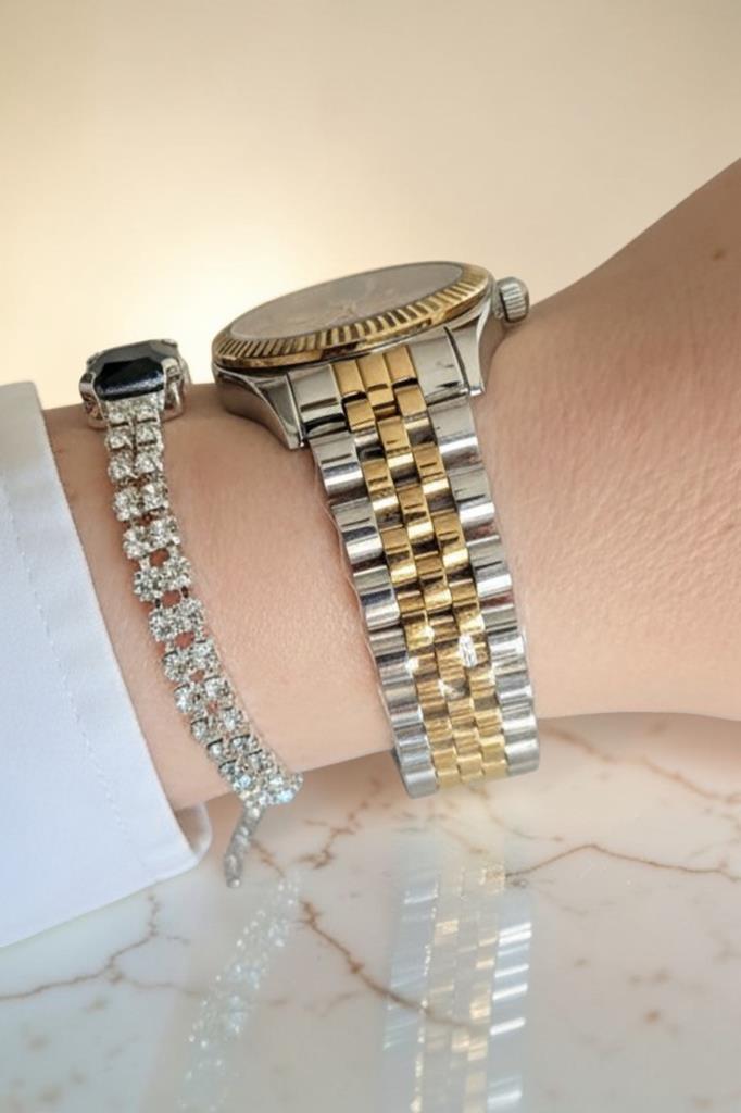 Saatle birlikte gönderilen şık bileklik hediyesi, ürüne estetik bir tamamlayıcı dokunuş katar. Set halinde sunulan bu model, özellikle hediye etmek için tercih edilen şık bir seçenektir. Saat ve bileklik birlikte kullanıldığında uyumlu ve zarif bir aksesuar kombinasyonu oluşturur.