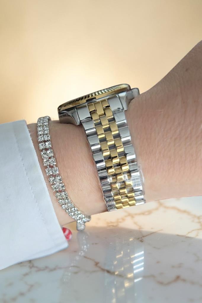 Saatle birlikte gönderilen şık bileklik hediyesi, ürüne estetik bir tamamlayıcı dokunuş katar. Set halinde sunulan bu model, özellikle hediye etmek için oldukça tercih edilen bir seçenektir. Saat ve bileklik birlikte kullanıldığında uyumlu ve zarif bir aksesuar kombinasyonu oluşturur.