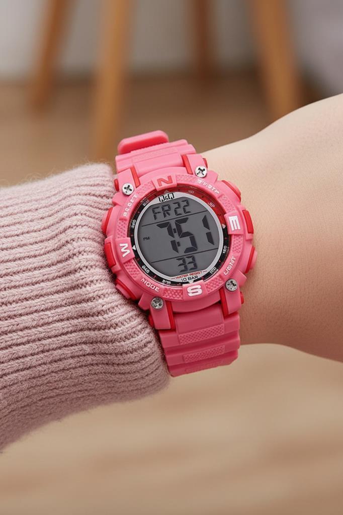Bu Q&Q fuşya dijital saat, enerjisi hiç bitmeyen çocuklar ve gençler için tasarlandı. Canlı fuşya rengi, neşeyi ve özgüveni yansıtırken; sade ama güçlü tasarımıyla her günün macerasına eşlik eder. Okulda, oyun parkında, tatilde ya da sporda… Bu saat hep bilekte, hep hazır.