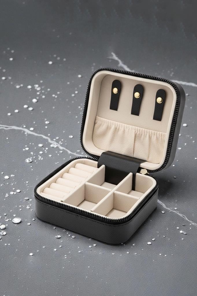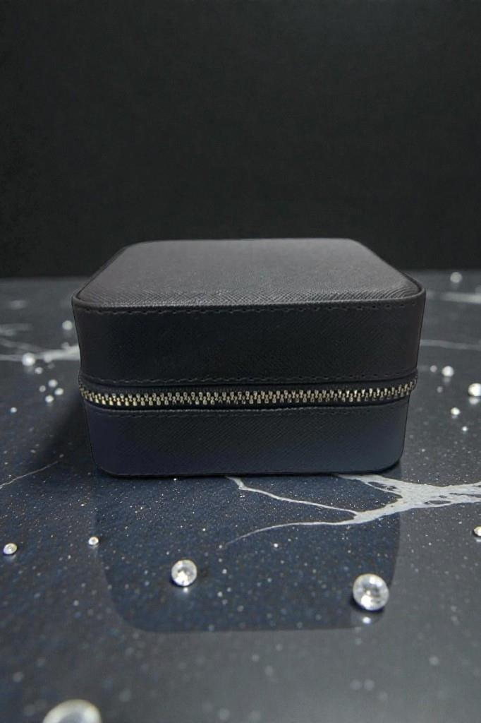 Siyah, Fermuarlı Deri Takı Ve Mücevher Kutusu, Seyahat Çantası (11,5x11,5 cm)