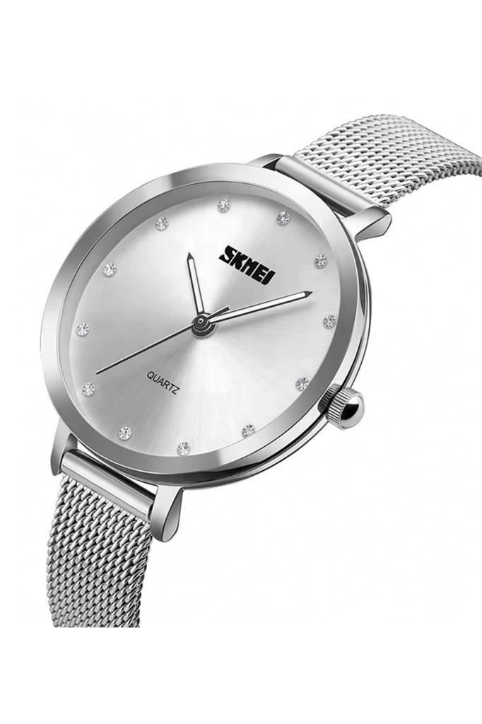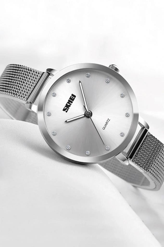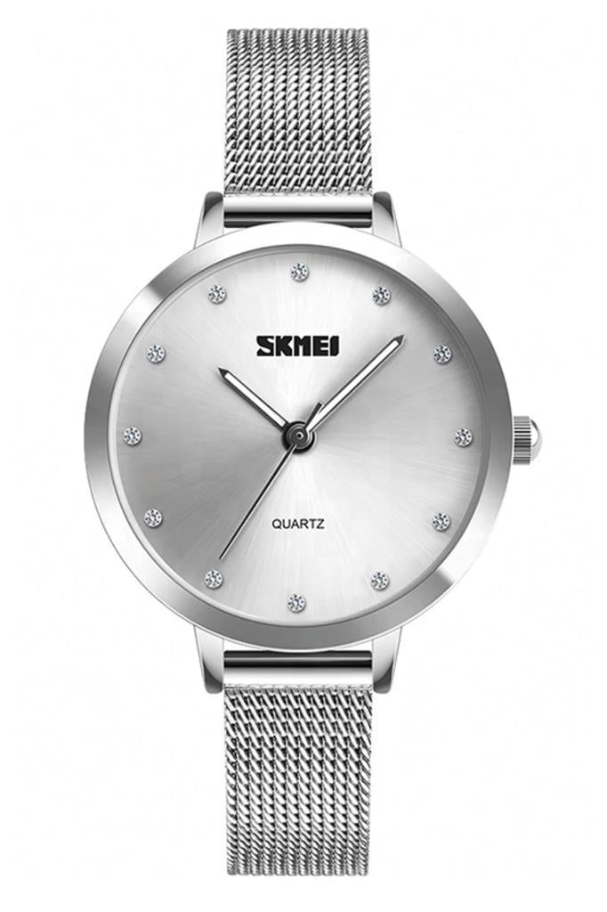 Metalik tonları ve sade tasarımıyla öne çıkan bu SKMEI kadın kol saati, günlük stilinize zahmetsiz bir zarafet katar. Yuvarlak formdaki 34 mm kasa çapı, ne çok büyük ne de küçük; bilekte dengeli ve modern bir duruş sunar.