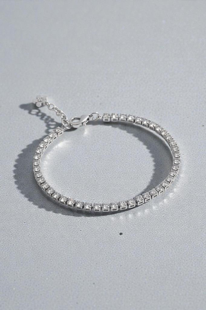 Zarif ve klasik tasarımıyla öne çıkan bu şık bileklik, günlük kullanımda sadeliği sevenler ve özel günlerde ışıltılı bir dokunuş arayanlar için ideal bir aksesuardır. Minimal ve zamansız tasarımı, bilekte son derece zarif durur ve farklı kombinlerle kolayca uyum sağlar. Tek başına kullanılabileceği gibi saat ve diğer bilekliklerle birlikte de rahatlıkla kombinlenebilir.