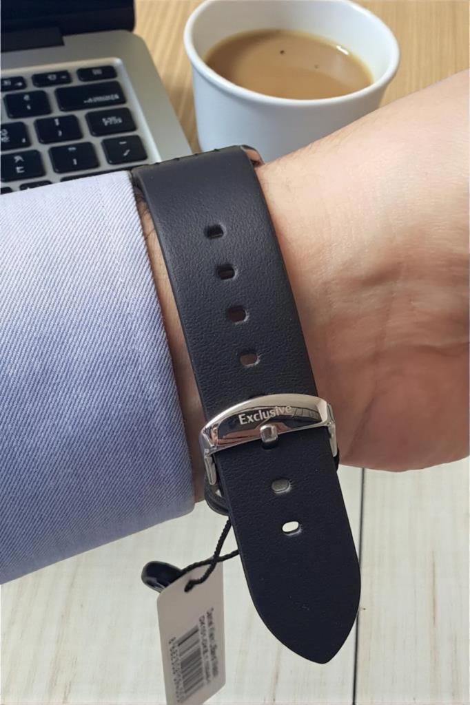 Siyah deri kordon, hem klasik hem modern kombinlerle rahatlıkla uyum sağlarken uzun süreli kullanımda konfor sunar. Bu model; ofis stiline önem veren, sade ama güçlü bir saat arayan erkekler için ideal bir tercihtir.