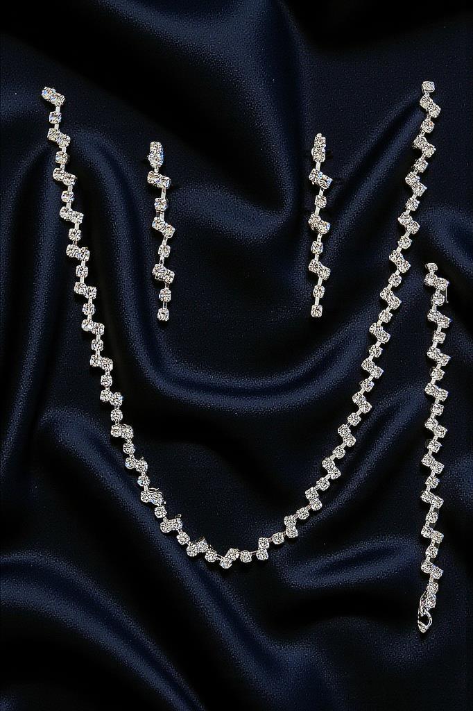 Zigzag Ajda Model 3’lü Kolye, Küpe ve Bileklik Seti - Düğün, Kına, Nişan Gelin Takı Seti