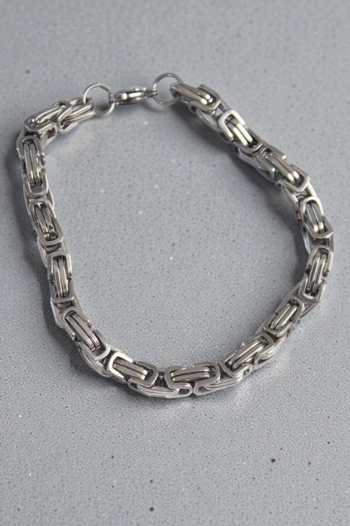 20–21 cm uzunluğu, erkek bileği için ideal ölçü sunarken zincir formu sayesinde hem spor kombinlerde hem de klasik stillerde rahatlıkla kullanılabilir.