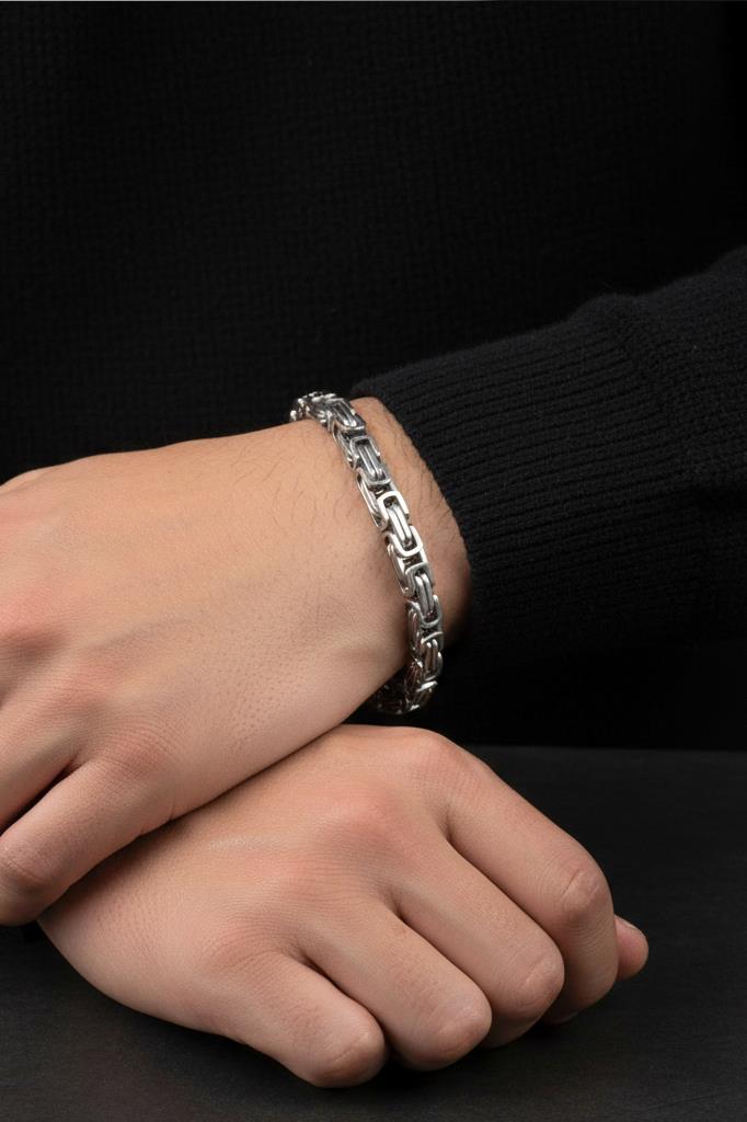 316L çelik erkek bileklik, net hatları ve güçlü zincir formu ile maskülen ve modern bir stil sunar. Paslanmaz 316L çelik materyali sayesinde kararma yapmaz, renk atmaz ve günlük kullanıma son derece uygundur. Tok ve dengeli yapısı bilekte kendini net şekilde hissettirir.