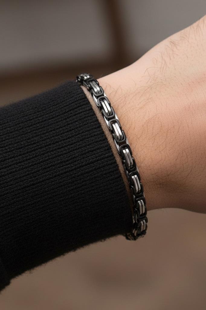 Zincir Model Siyah/Metalik Erkek Çelik Bileklik