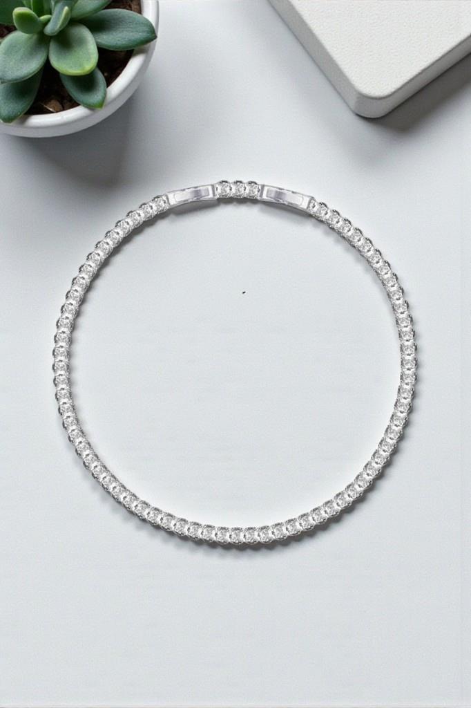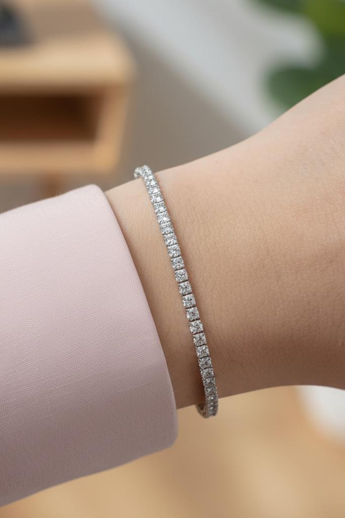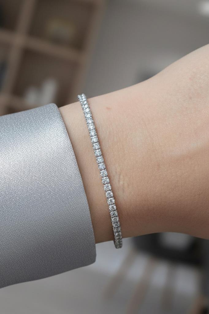 Minimal ve zarif tasarımı sayesinde tek başına kullanıldığında sade bir şıklık sunar; saat ve diğer bilekliklerle birlikte kombinlendiğinde ise modern ve güçlü bir stil oluşturur. Klasik tenis bileklik formu, her yaş ve tarza hitap eden zamansız bir aksesuardır.