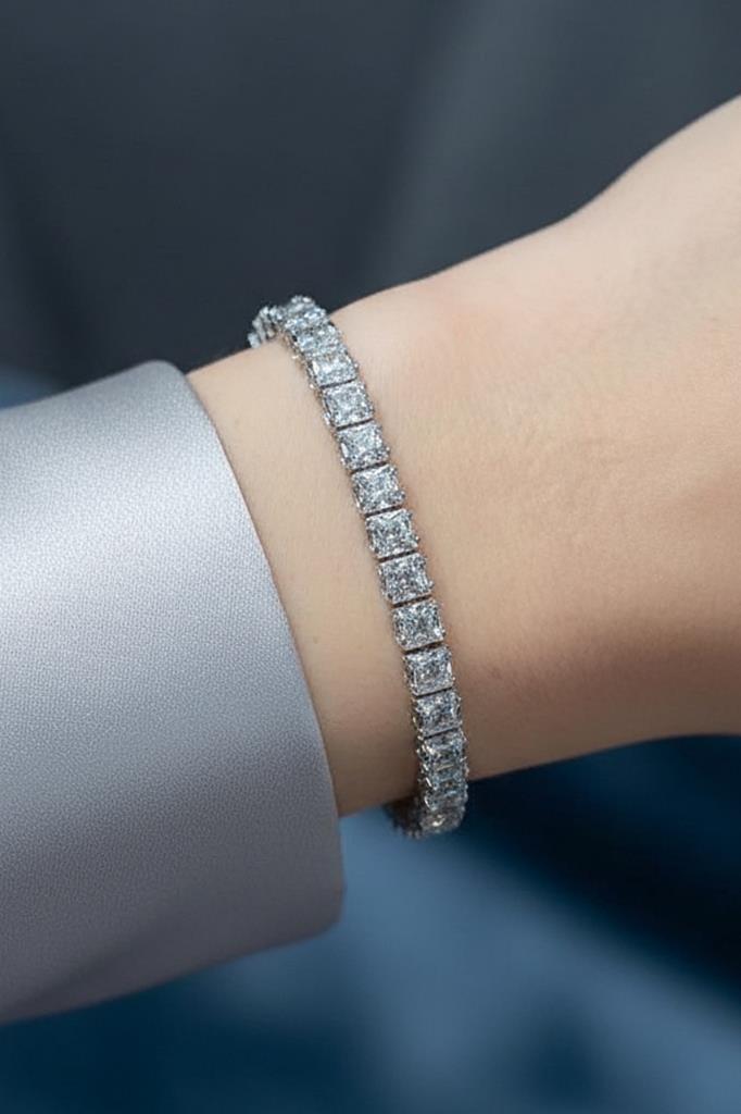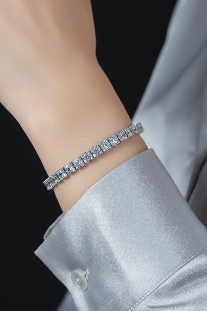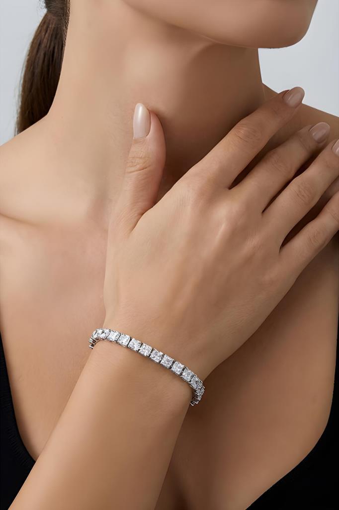 Zirkon Taşlı 4 mm Kare Su Yolu Kadın Bileklik
