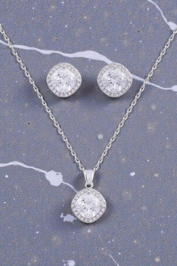 Zirkon Taşlı Kadın Kolye Küpe Seti