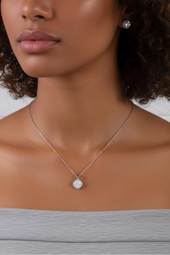 Rodyum kaplama kolye ve küpe seti, ışıltıyı tek parçada sunan zamansız ve güçlü bir tasarıma sahiptir. Yüksek kalite pirinç üzerine rodyum kaplama ile üretilen bu özel set, parlaklığını uzun süre koruyacak şekilde tasarlanmıştır. Üzerinde yer alan cubic zirkon taşlar, elmas görünümüne en yakın parlaklığı sağlayarak şık ve dikkat çekici bir duruş sunar.