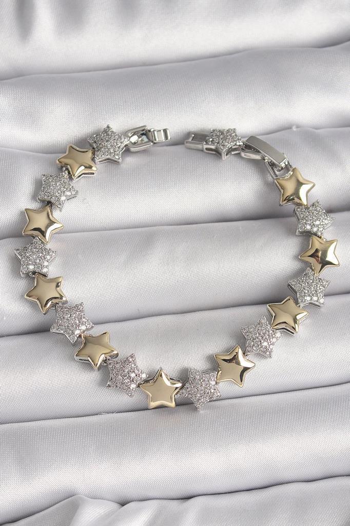 Zirkon Taşlı Yıldız Model Altın/Metalik Kadın Bileklik