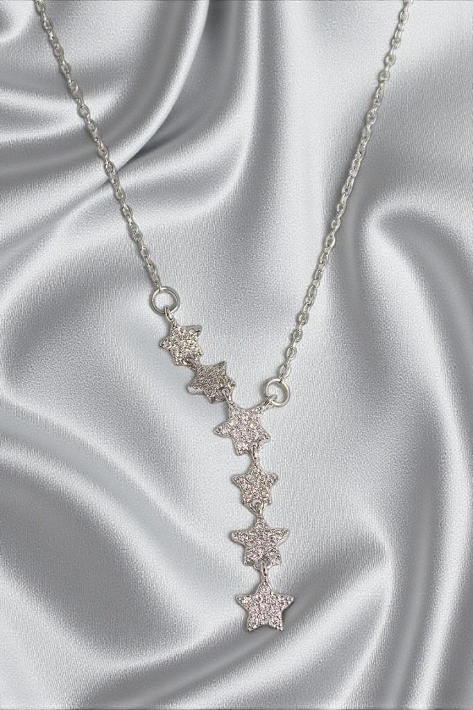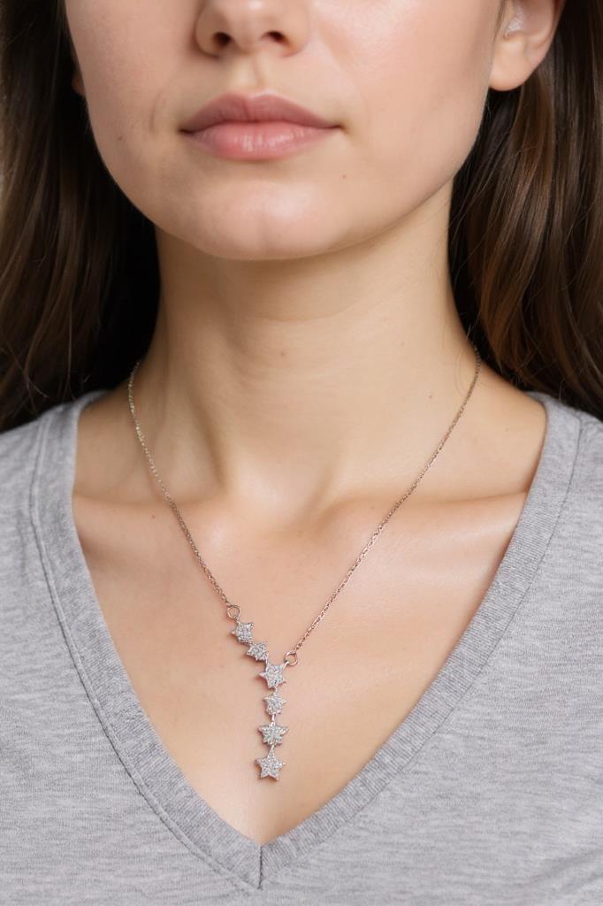 Minimal tasarımı modern bir dokunuşla birleştiren bu yıldız detaylı çelik kolye, zarafeti günlük stile taşımak isteyenler için özel olarak tasarlanmıştır. Dikey formda sıralanan yıldız figürleri, kolyeye ince ve akıcı bir görünüm kazandırırken sade şıklığı ön plana çıkarır.