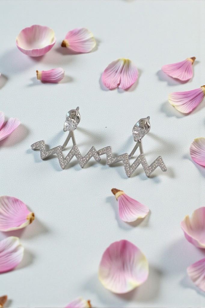 Zirkon Taşlı Zikzak Metalik Kadın Küpe