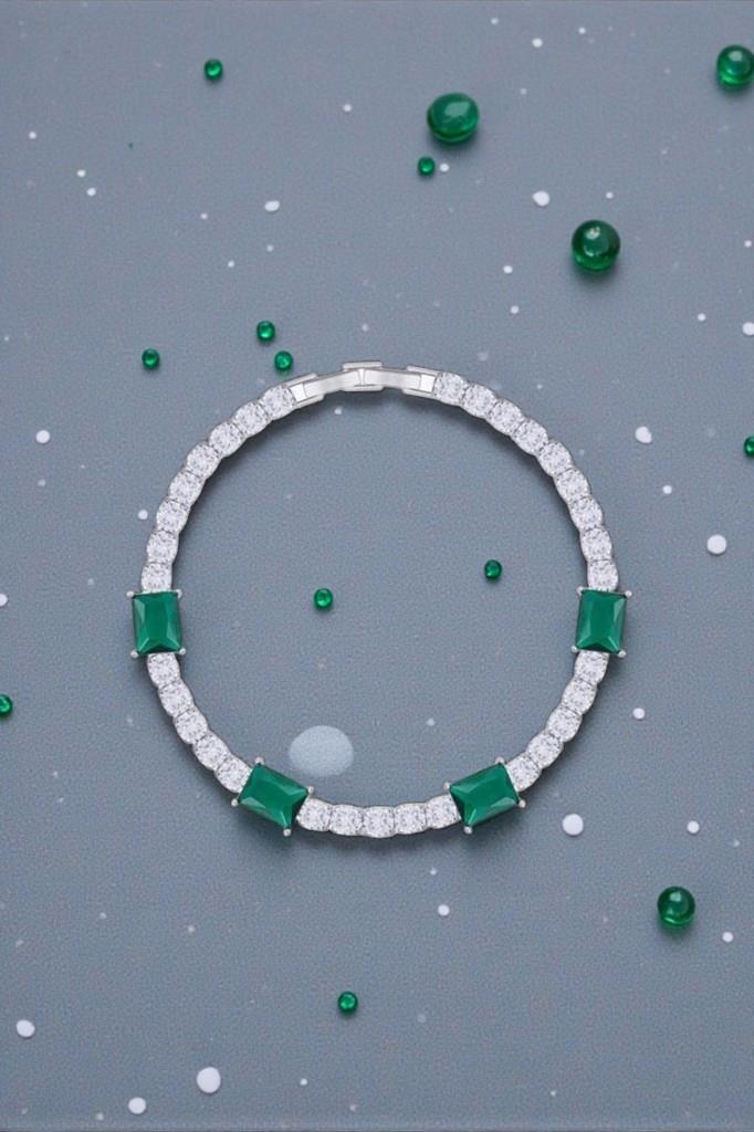 Zirkon ve Zümrüt Yeşili Taşlı Su Yolu Kadın Bileklik